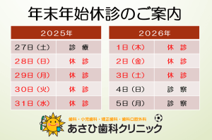 平素より、あさひ歯科クリニックをご利用いただき、誠にありがとうございます。