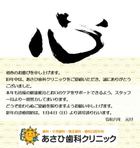 旧年中はあさひ歯科クリニックをご愛顧いただき、誠にありがとうございました。